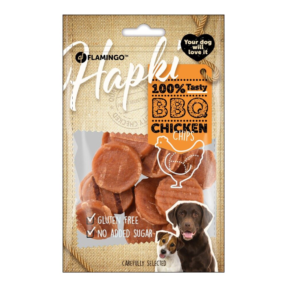 Deze speciale hondenchips zijn verkrijgbaar in vier onweerstaanbare smaken: BBQ Kip (deze smaak), Konijn, Eend en Lam.