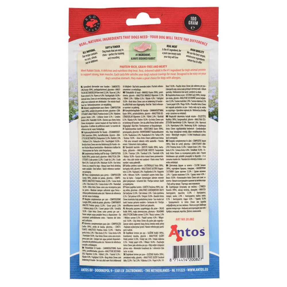 Honden houden ook van een lekkere snack tussendoor! Deze heerlijke konijnenstaafjes zijn graanvrij en glutenvrij en bieden jouw hond veel smaak en kauwplezier. Geschikt voor honden van verschillende rassen, groottes en leeftijden. Het zijn zachte kauwstaafjes, dus ze zijn ook geschikt voor senior honden met een kwetsbaar gebit.