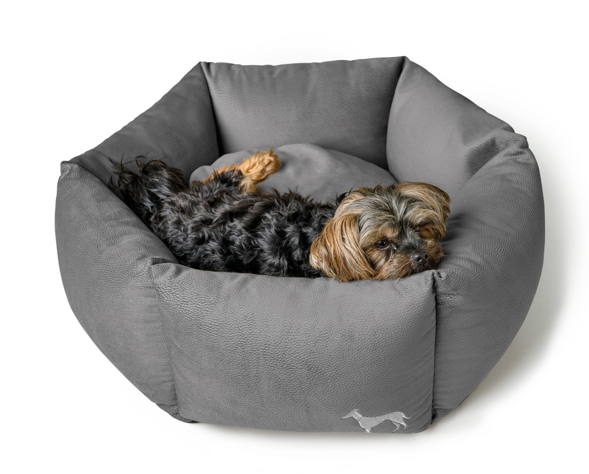 Deze unieke zeshoekige orthopedische hondenmand is met zijn moderne vorm een ​​perfect en comfortabel rusteiland voor jouw geliefde hond. De stevige, opstaande randen bieden de mogelijkheid om het hoofd comfortabel te laten rusten en er lekker tegenaan te liggen, om de avonturen van de dag zo goed mogelijk te kunnen verwerken. Deze mand heeft ook een omkeerbaar binnenkussen, superhandig!